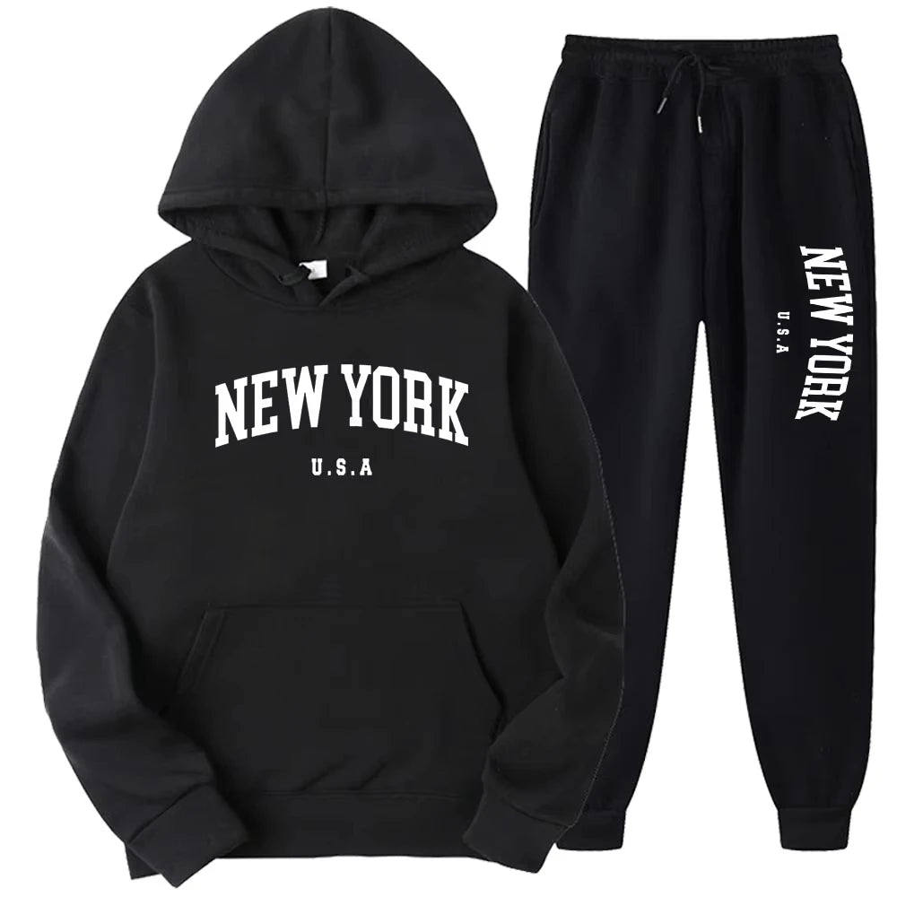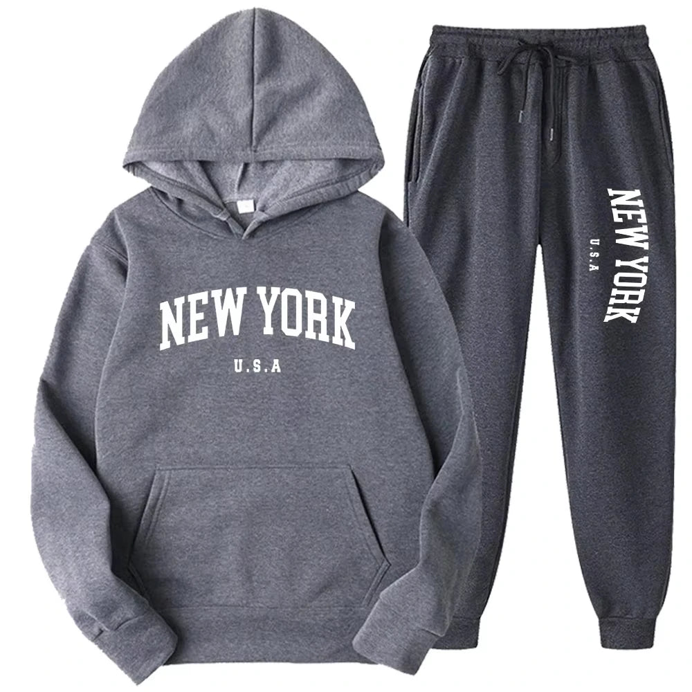 Estilo cómodo con vibra neoyorquina. Este set combina sudadera con capucha y jogger suave para un look relajado dentro o fuera de casa. Ideal para días casuales o salidas con amigos.